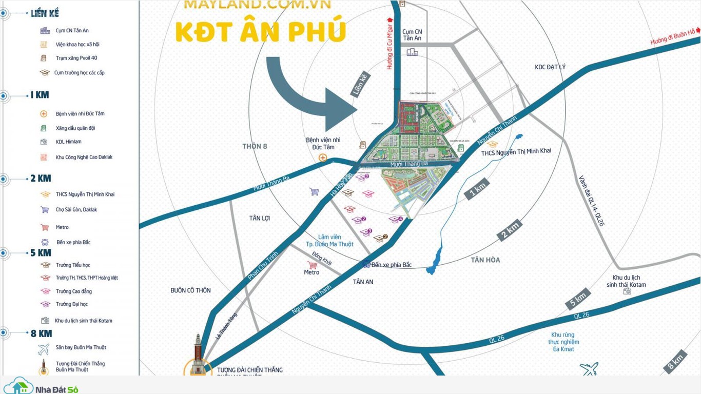 - Bán kính 1 km : Bệnh viện , KDL Himlam, Khu công nghệ cao Daklak