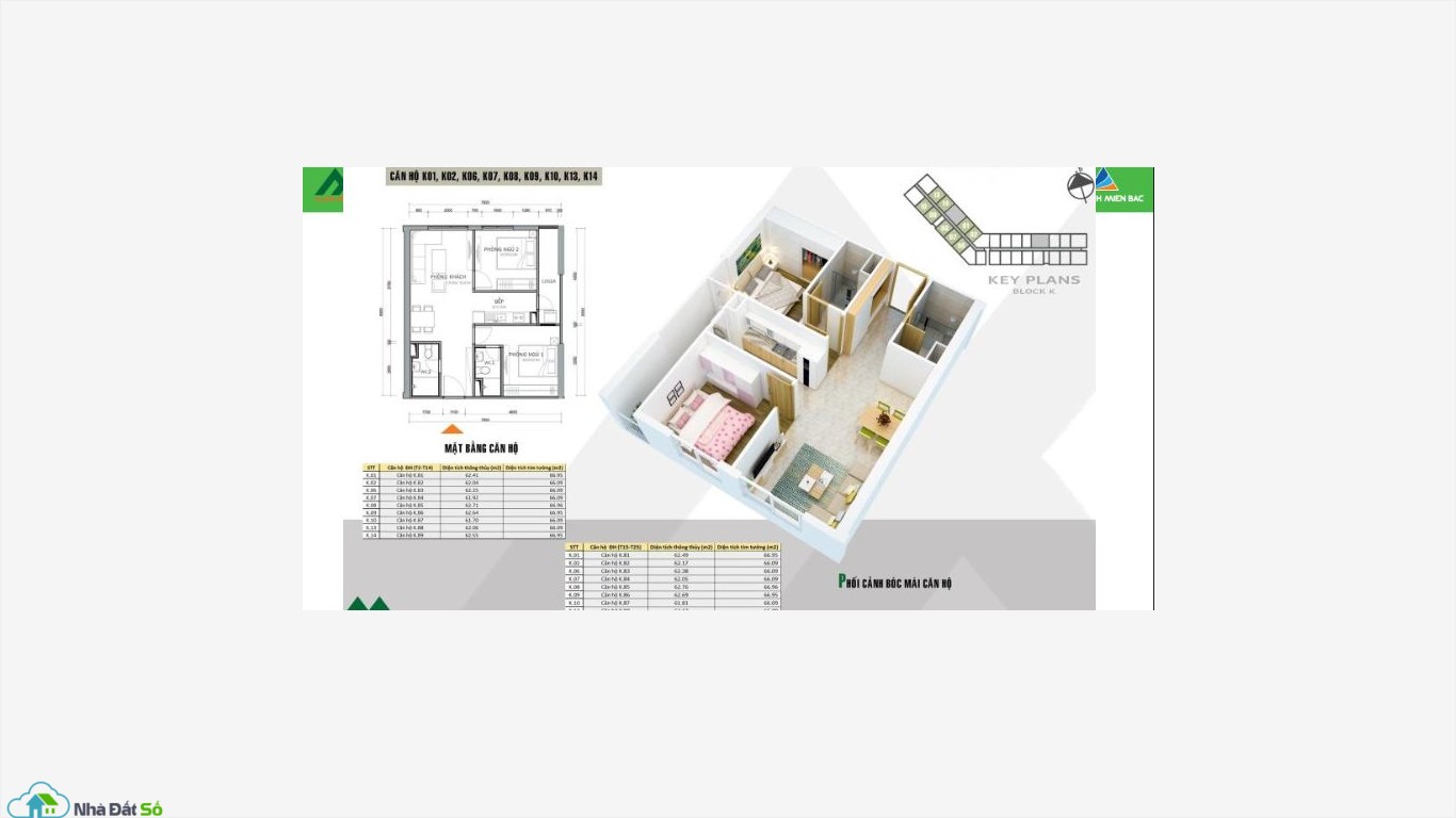 Ø Diện tích: 50 – 62m2 ( 2 phòng ngủ, 1- 2 nhà vệ sinh