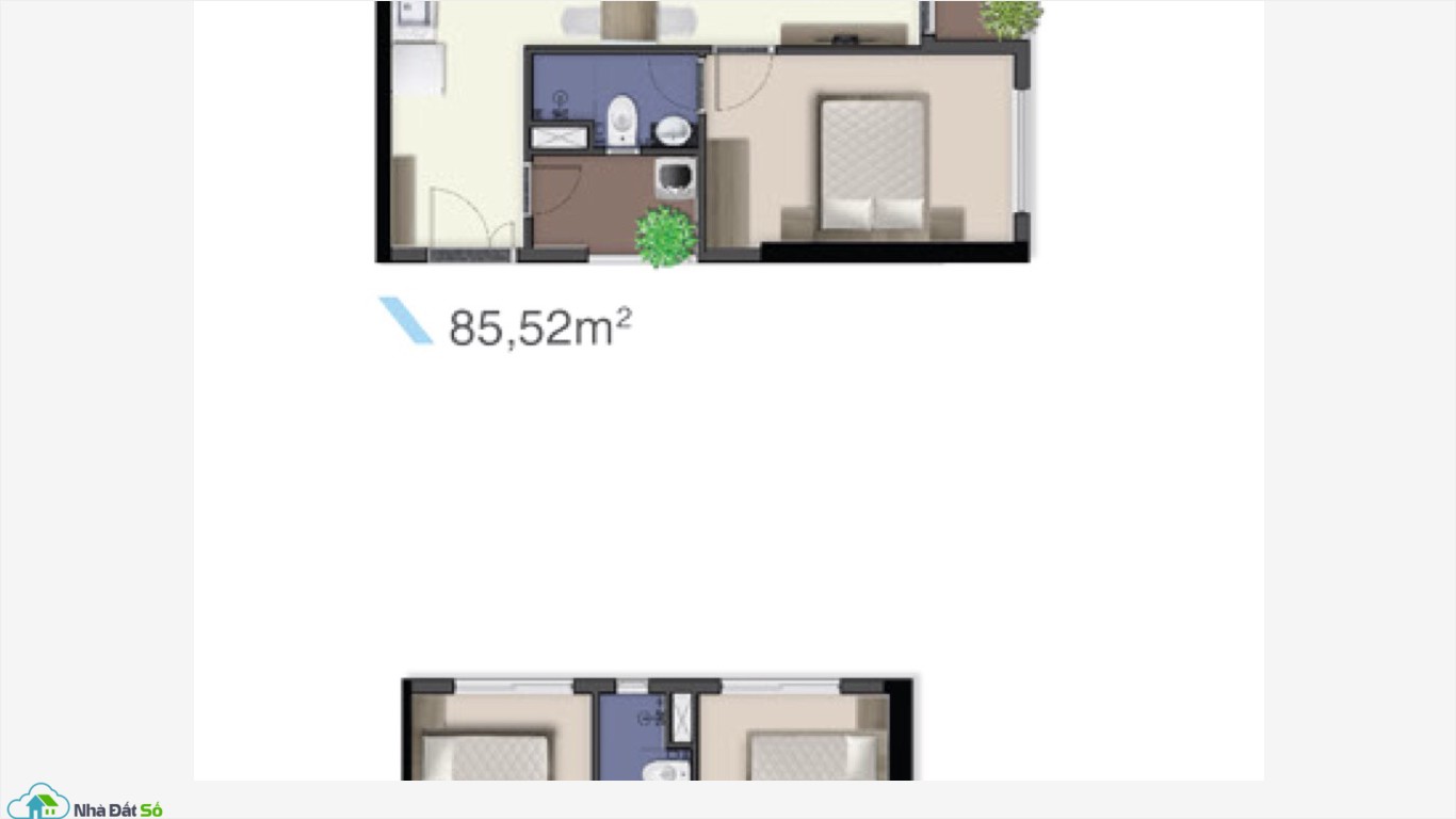 + 3 phòng ngủ: 85, 86.69m2.