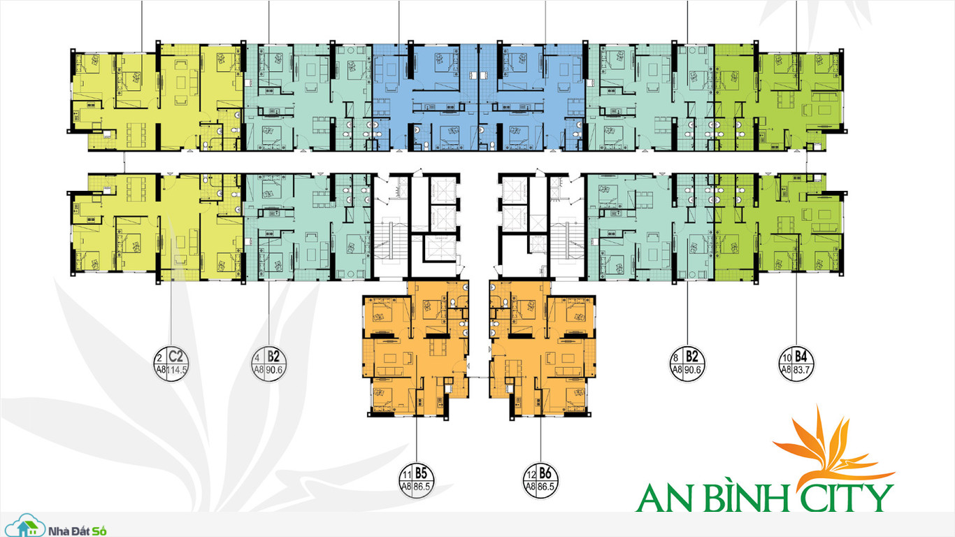 rộng lớn, An Bình City quần thể gồm 8 toà căn hộ cao từ 28 - 35 tầng, thiết kế