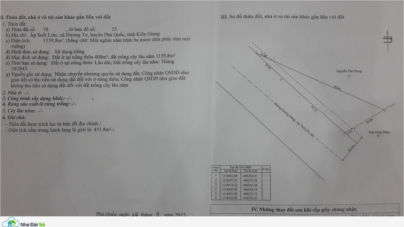 Đất Mặt Tiền Đường Tl 46, Ấp Suối Lớn, Xã Dương Tơ, Phú Quốc. Giá 8 Triệu/m2. Sổ Hồng Riêng