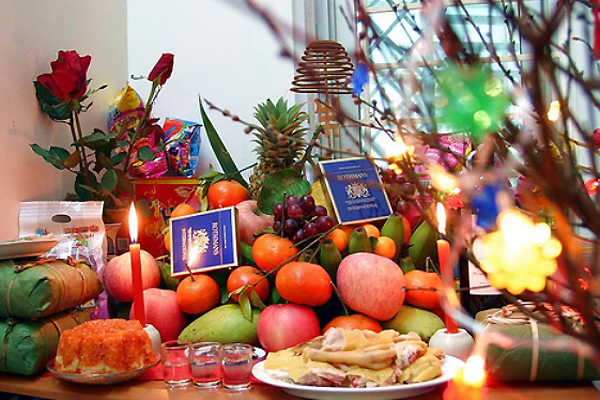 Khoảng sáng 30 Tết, việc bày biện bàn thờ Tết phải được hoàn tất. Tuỳ theo điều kiện kinh tế hay văn hóa từng miền mà trên bàn thờ có thêm cặp dưa hấu xanh, gói thuốc lá, cặp bánh chưng hay bánh tét…Việc thắp sáng cho bàn thờ ngày Tết cũng được bắt đầu từ ngày 30. Có nhà sử dụng loại hương vòng, hay hương que loại lớn, cháy liên tục trong nhiều ngày với nhiều ý nghĩa biểu trưng như các vì tinh tú đang tỏa sáng, sự chăm lo ân cần của con cháu…